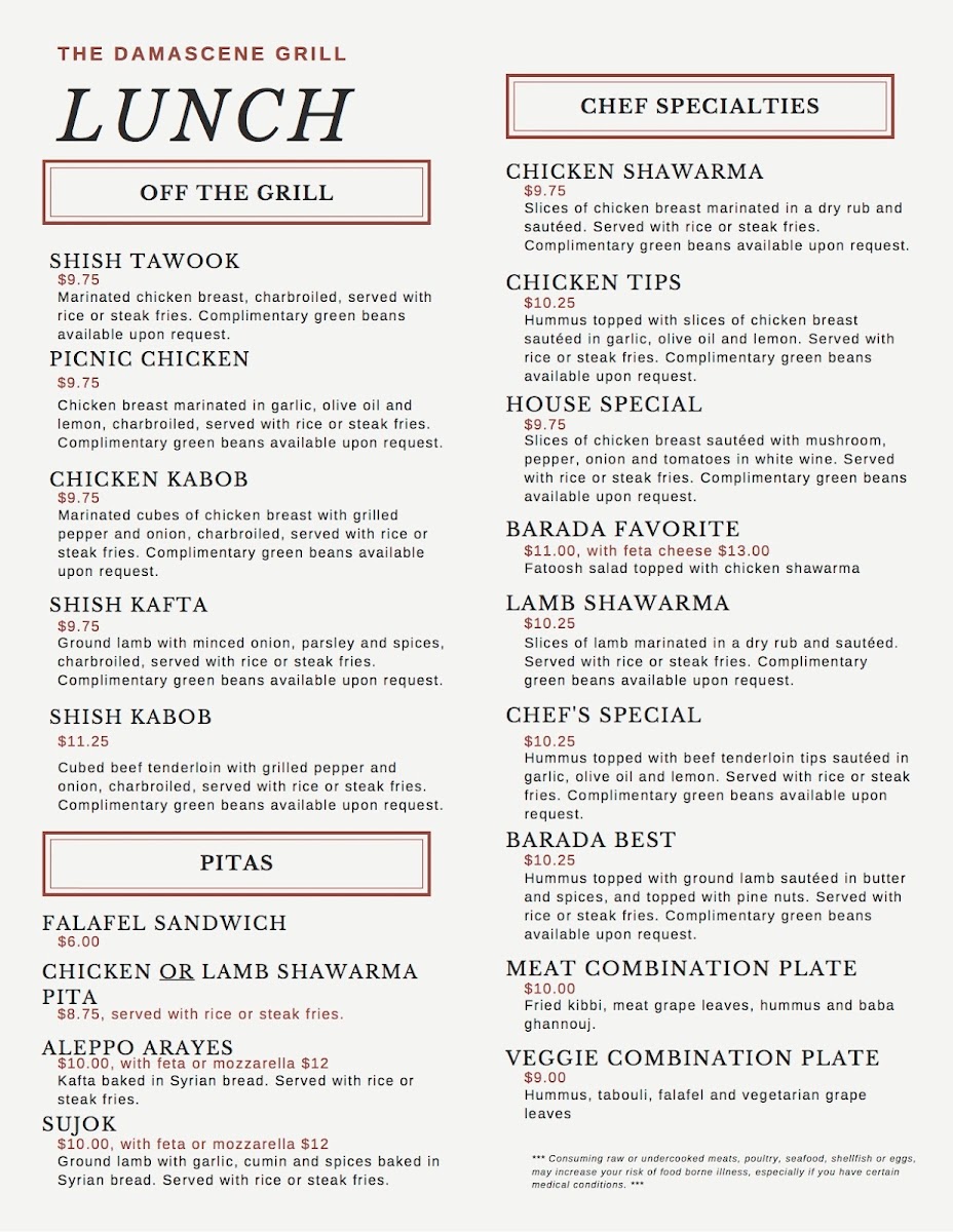 Every meal is thoughtfully crafted, reflecting the restaurant's commitment to quality. Diners rave about the exquisite garlic sauce that perfectly complements the dishes, enhancing every bite. The warm, welcoming service adds to the overall experience, making each visit memorable. Whether dining in or taking out, Damascene Grill promises a delightful culinary journey that keeps guests coming back for more.