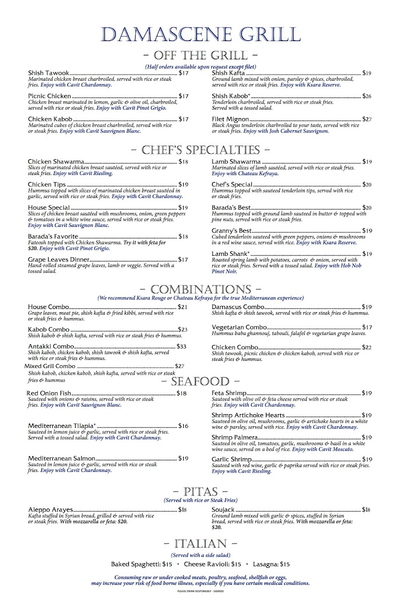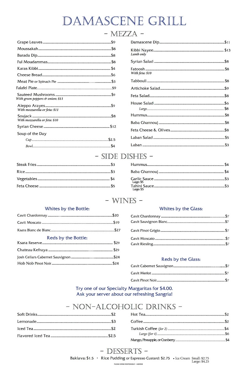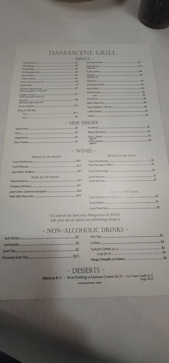 Welcome to Damascene Grill, a hidden gem located at 5834 Monroe St B, Sylvania, OH. At Damascene Grill, culinary tradition meets modern flair, offering a menu rich in flavors from the Mediterranean and Italy. The standout dishes include the delectable Shrimp Palmera, sautéed to perfection with olive oil, garlic, and fresh basil, served on a bed of aromatic rice for just $22.80. For pasta lovers, the indulgent Lasagna and Cheese Ravioli are must-tries, both priced at $18.00 and paired with side salads for balance.